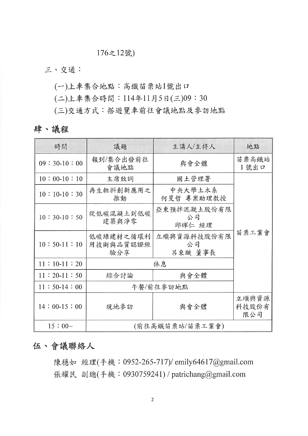 有關永旭豐環境科技有限公司執行內政部國土管理署 「114年度營建資源循環利用及產業轉型整合管理推動計畫案」,將辦理「營建資源循環利用及產業鏈結工作坊」,詳如說明。