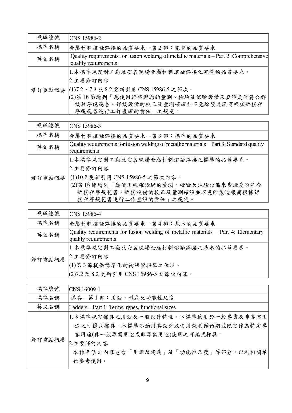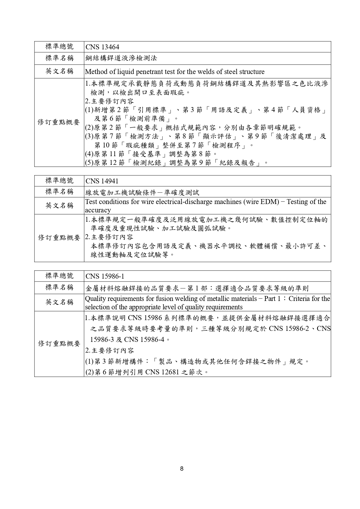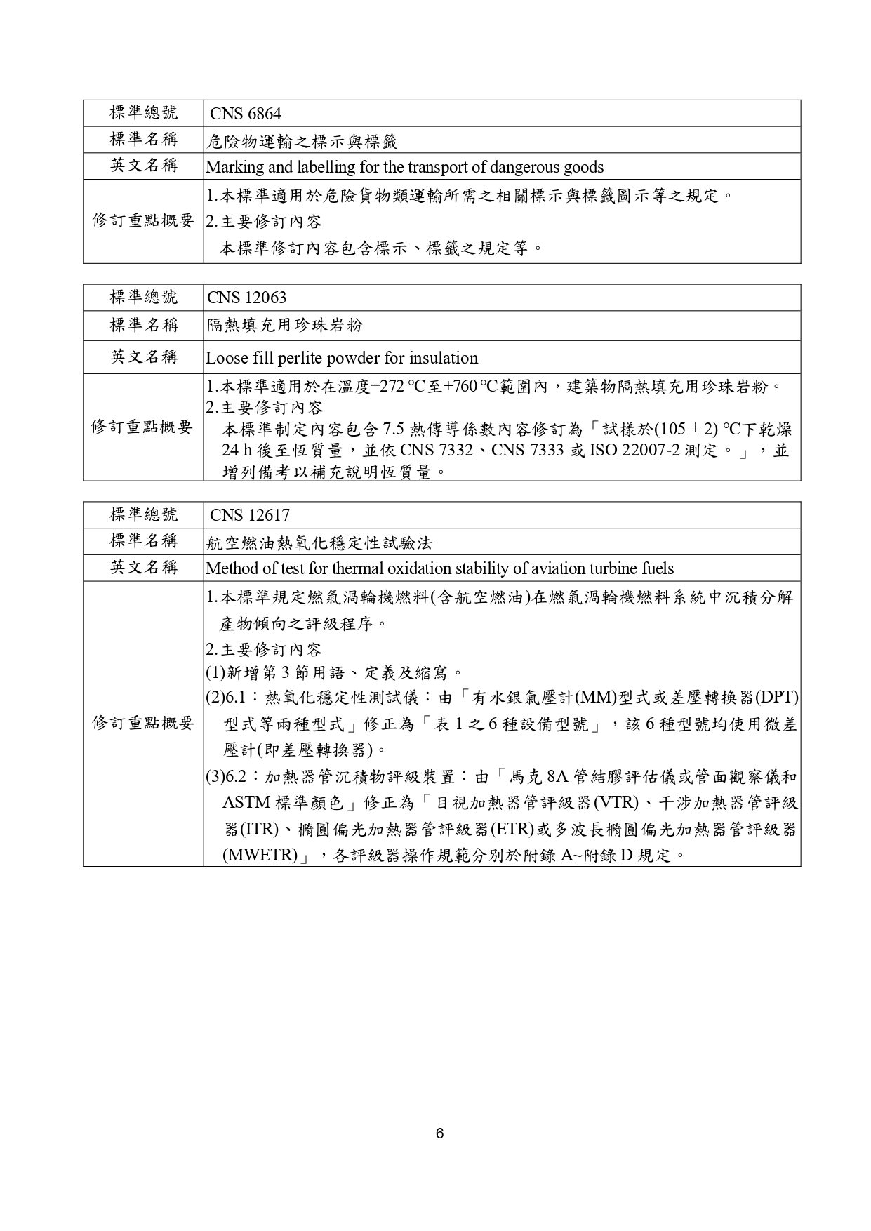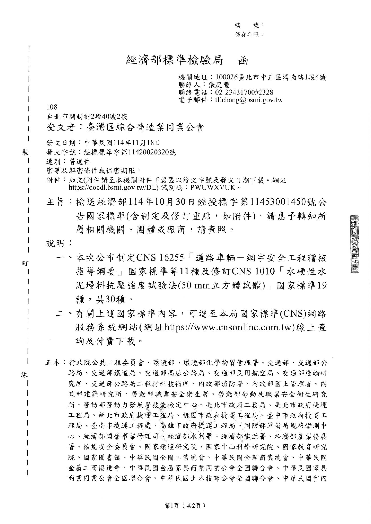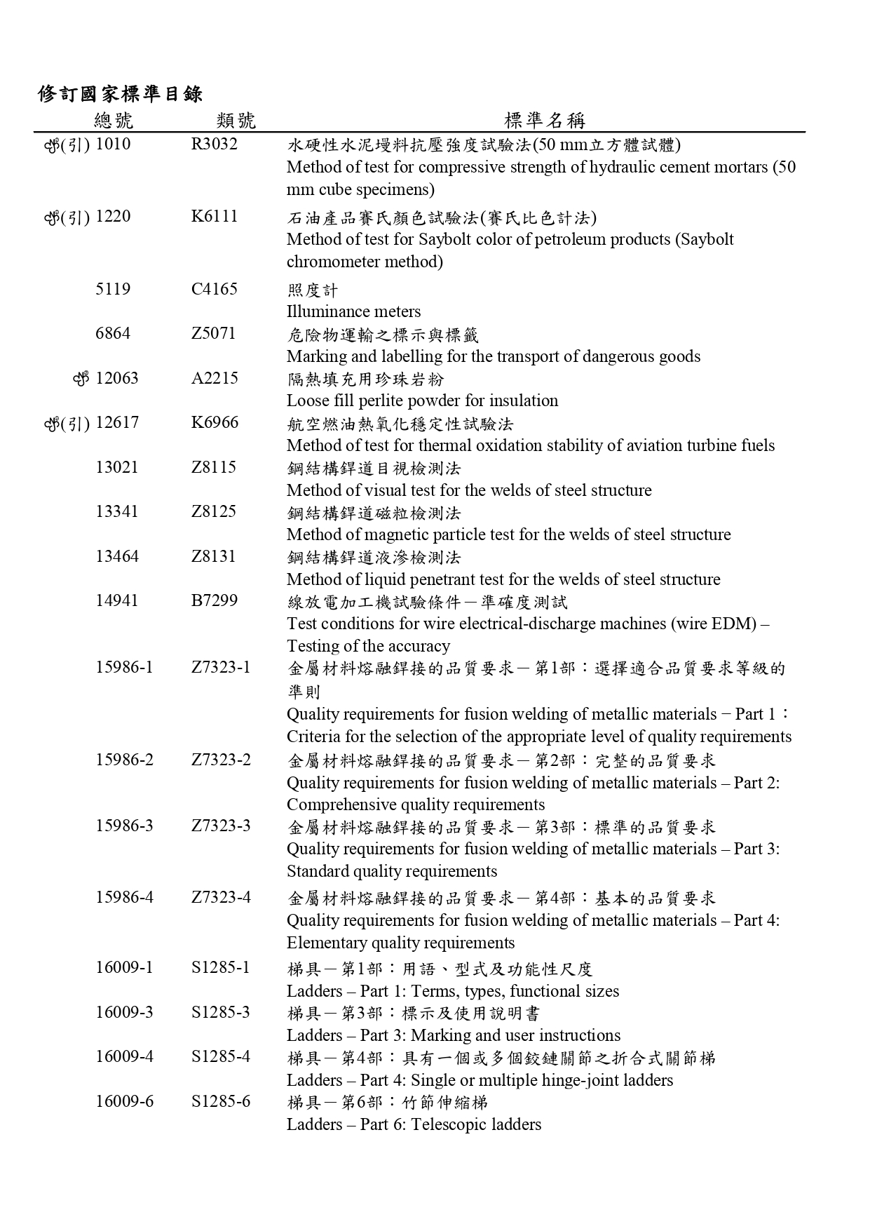 經濟部114年10月30日經授標字第11453001450號公告國家標準(含制定及修訂重點,如附件) 2025-11-25 檔案下載 經濟部標準檢驗局 114.11.18 經標標準字第11420020320號函 檢送經濟部114年10月30日經授標字第11453001450號公告國家標準(含制定及修訂重點,如附件)