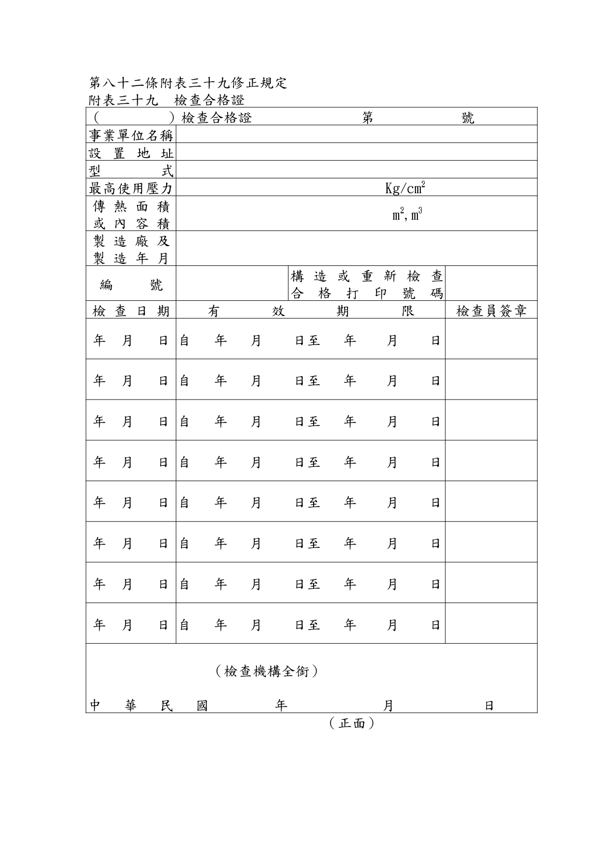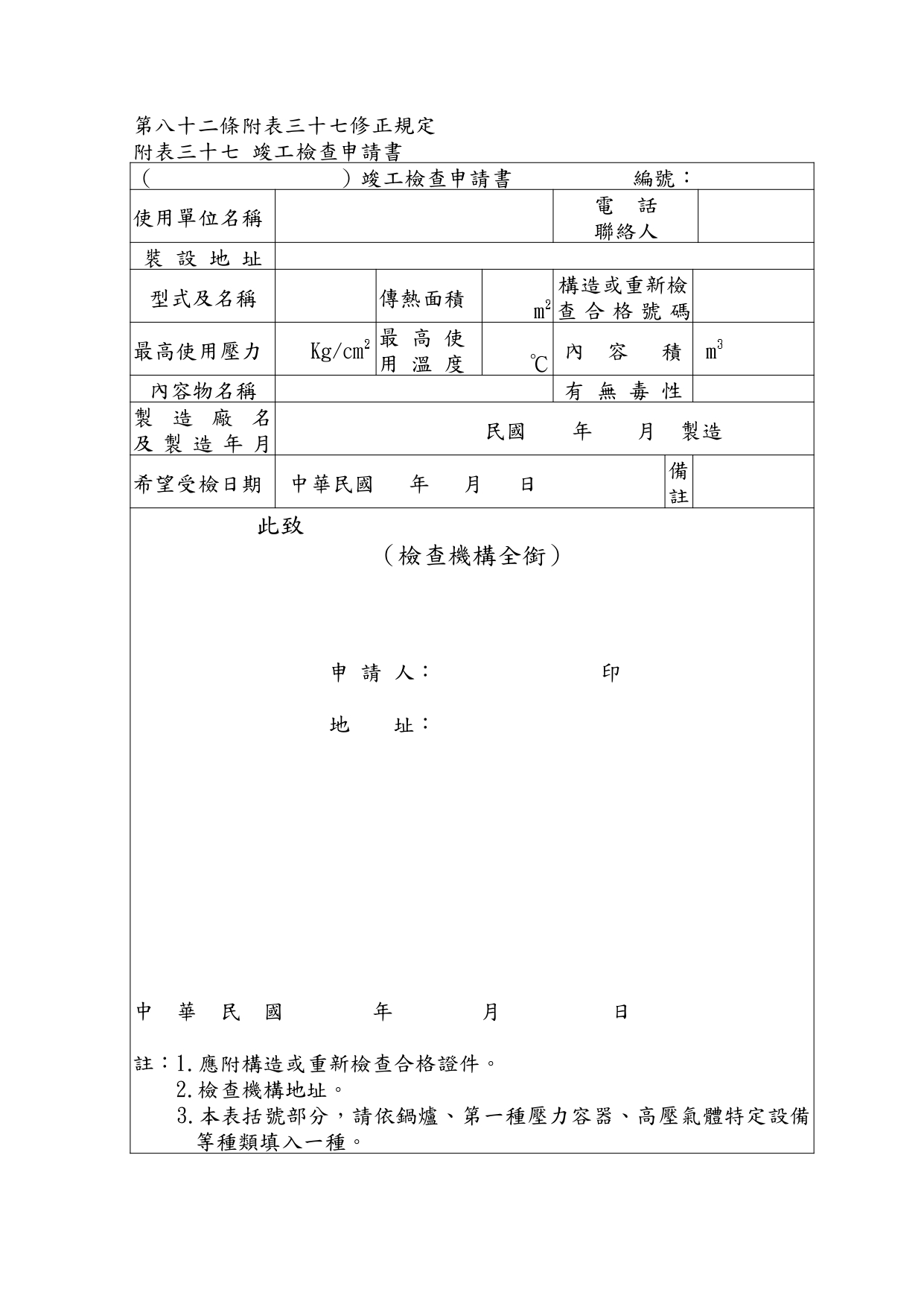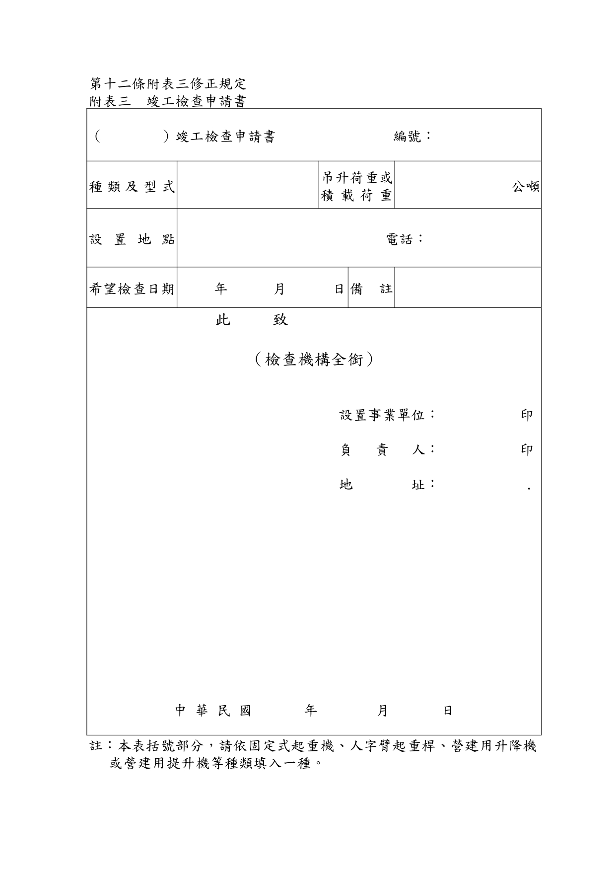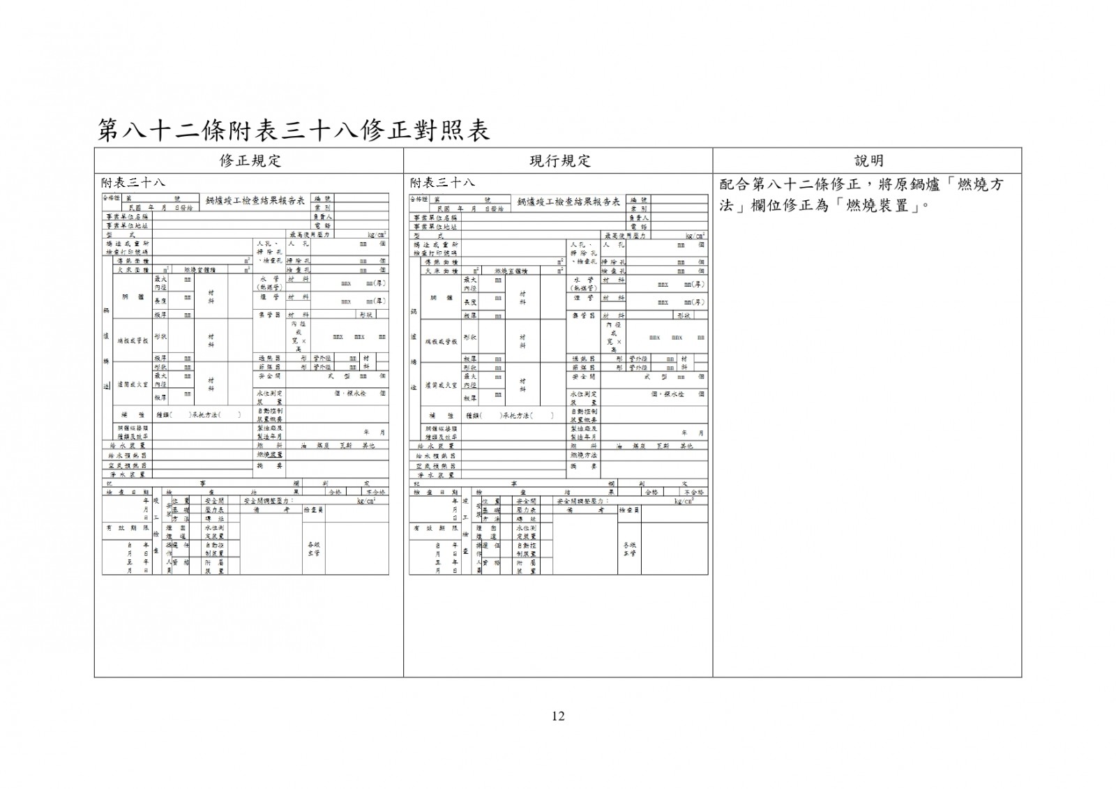 勞動部 「危險性機械及設備安全檢查規則」部分條文修正條文、總說明及條文對照表各1份 2025-12-29 檔案下載 勞動部 114.12.23 勞職授字第1140255230D號函 有關「危險性機械及設備安全檢查規則」部分條文,業經本部於中華民國114年12月23日以勞職授字第1140255230號令修正發布,茲檢送「危險性機械及設備安全檢查規則」部分條文修正條文、總說明及條文對照表各1份