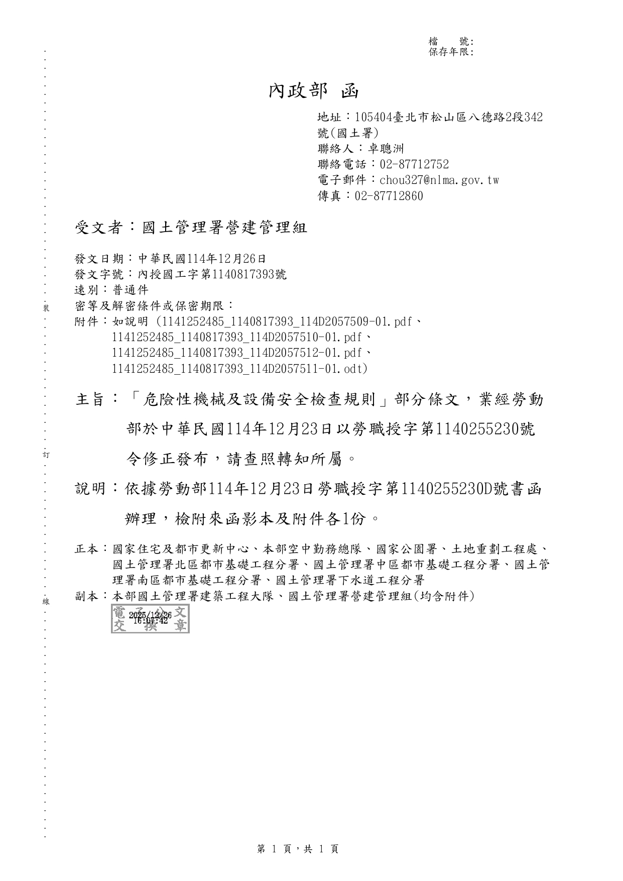 內政部國土管理署 115.1.2  國署營字第1140143205號函