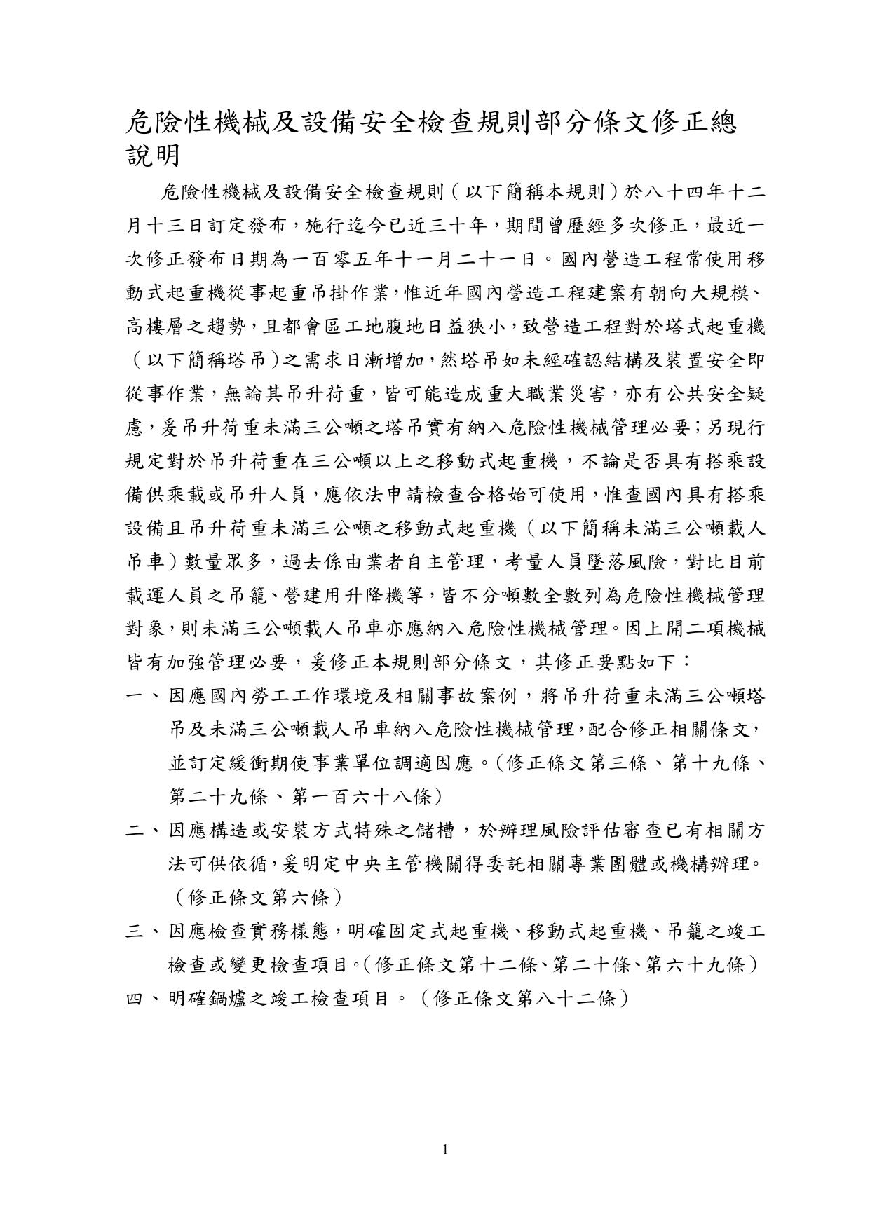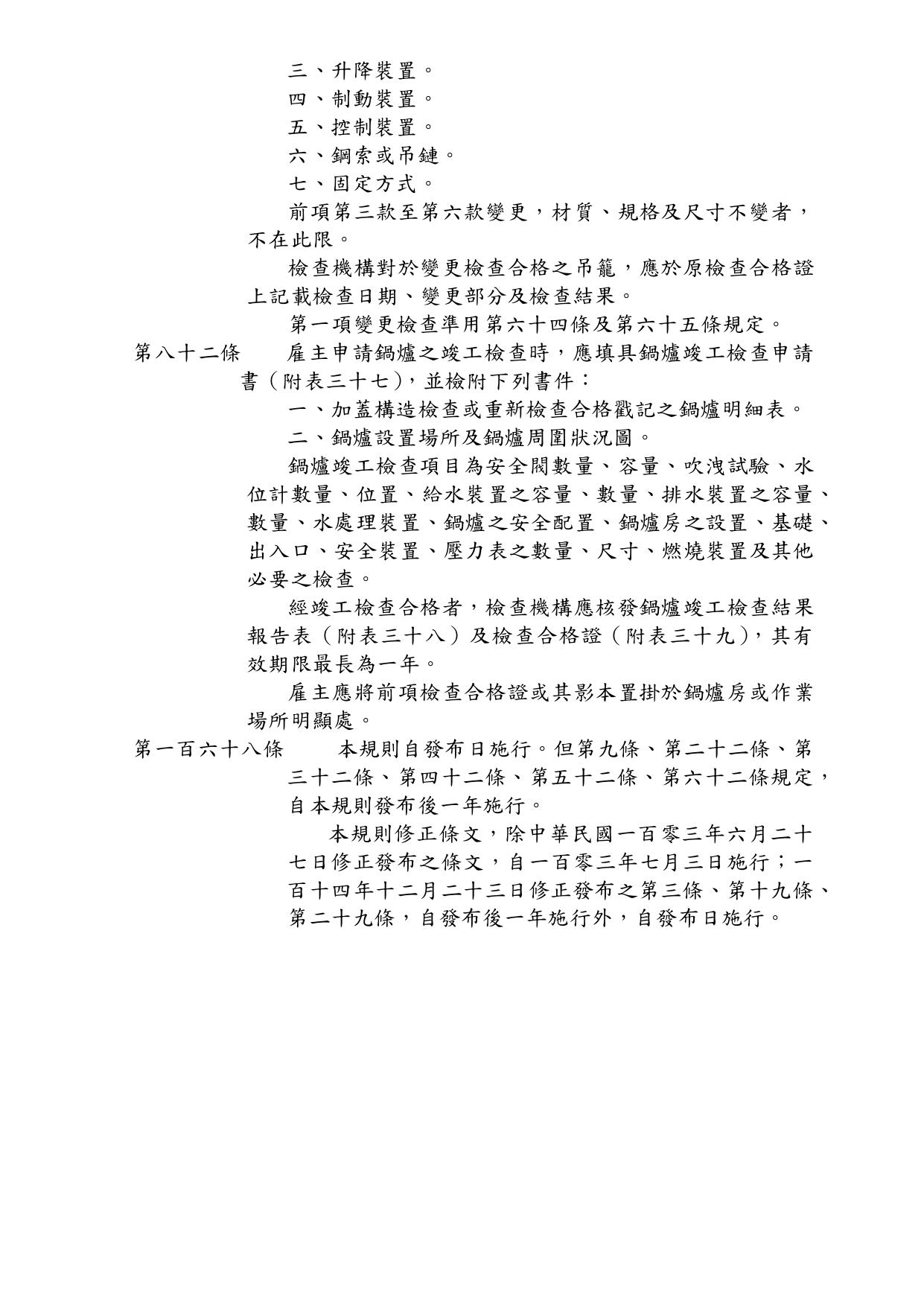 勞動部於中華民國114年12月23日以勞職授字第1140255230號令發布修正「危險性機械及設備安全檢查規則」部分條文