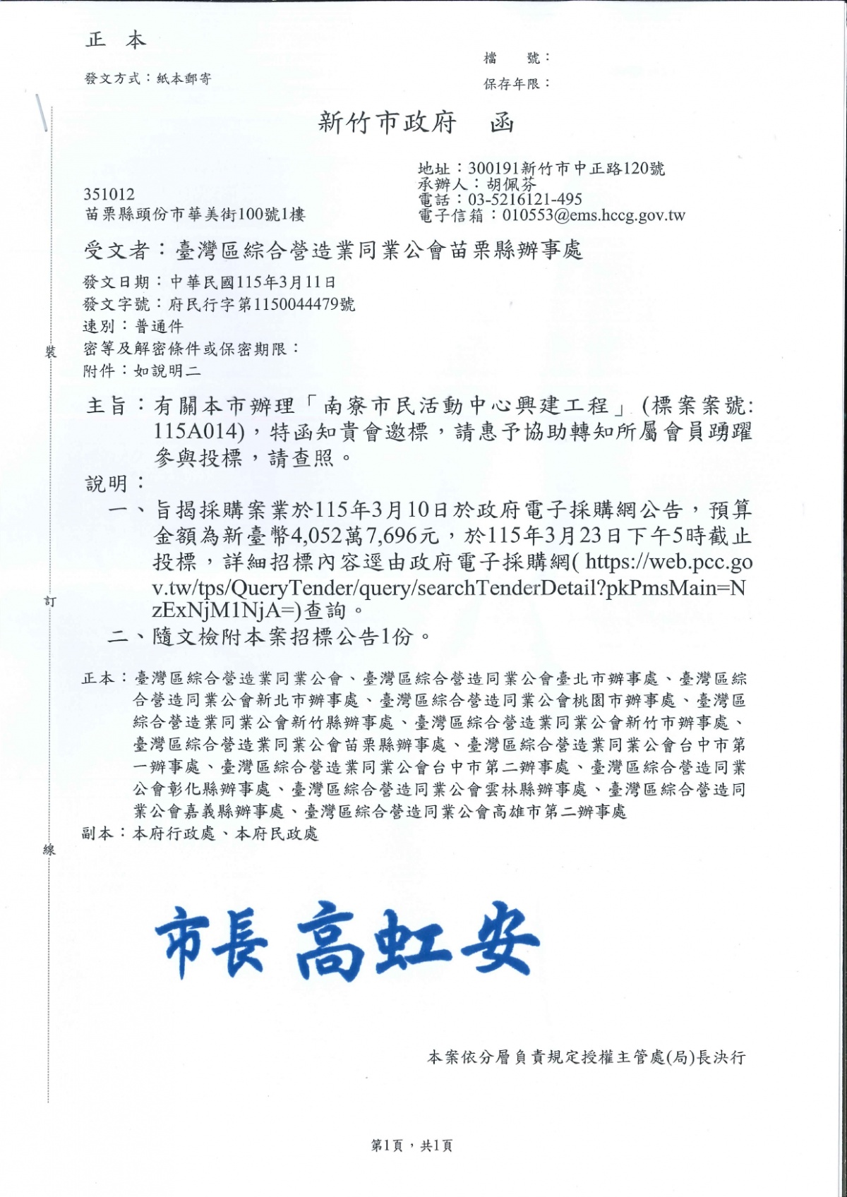 新竹市政府 115.3.11 府民行字第1150044479號