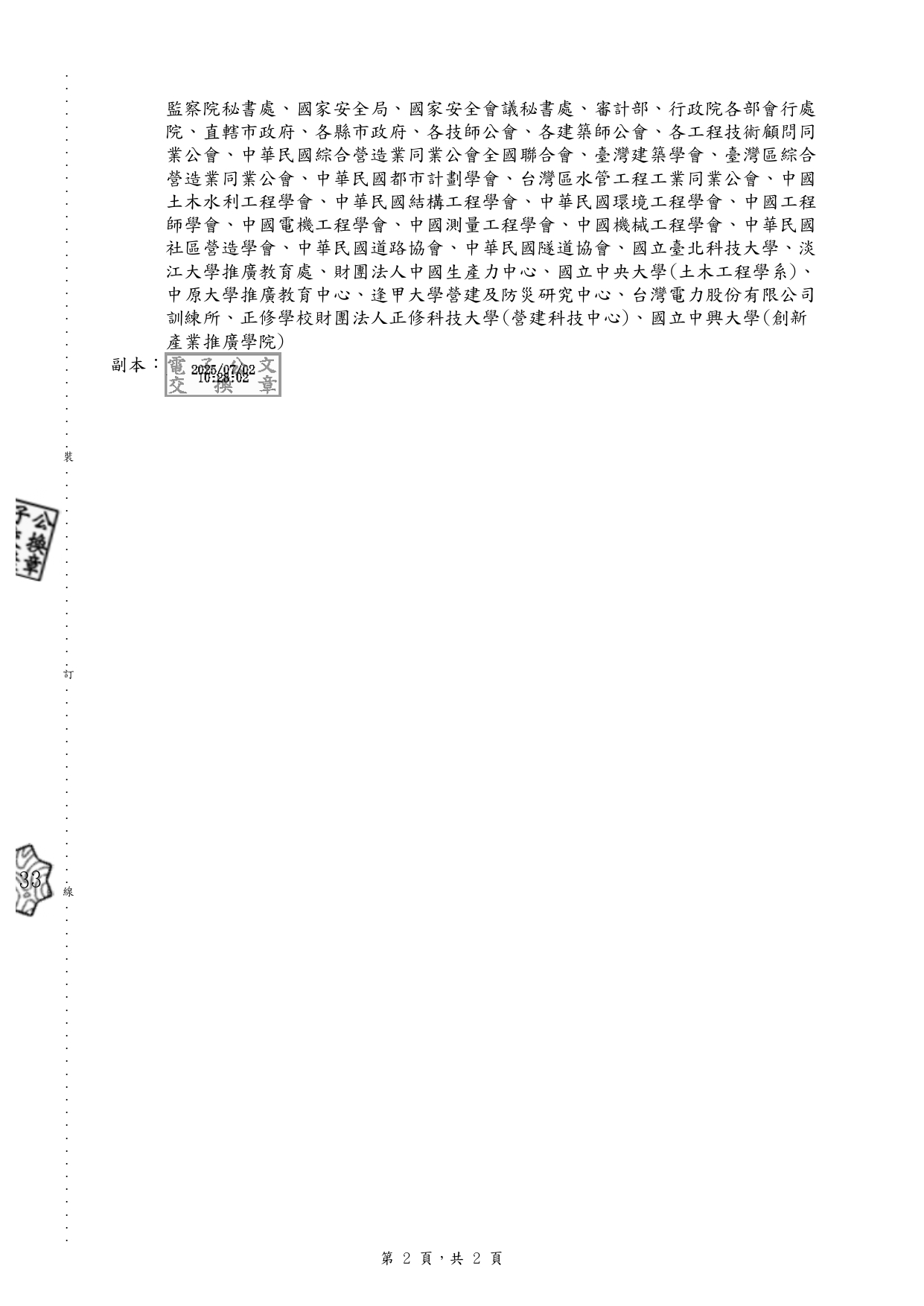 行政院公共工程委員會 114.7.2 工程管字第1140300507號函