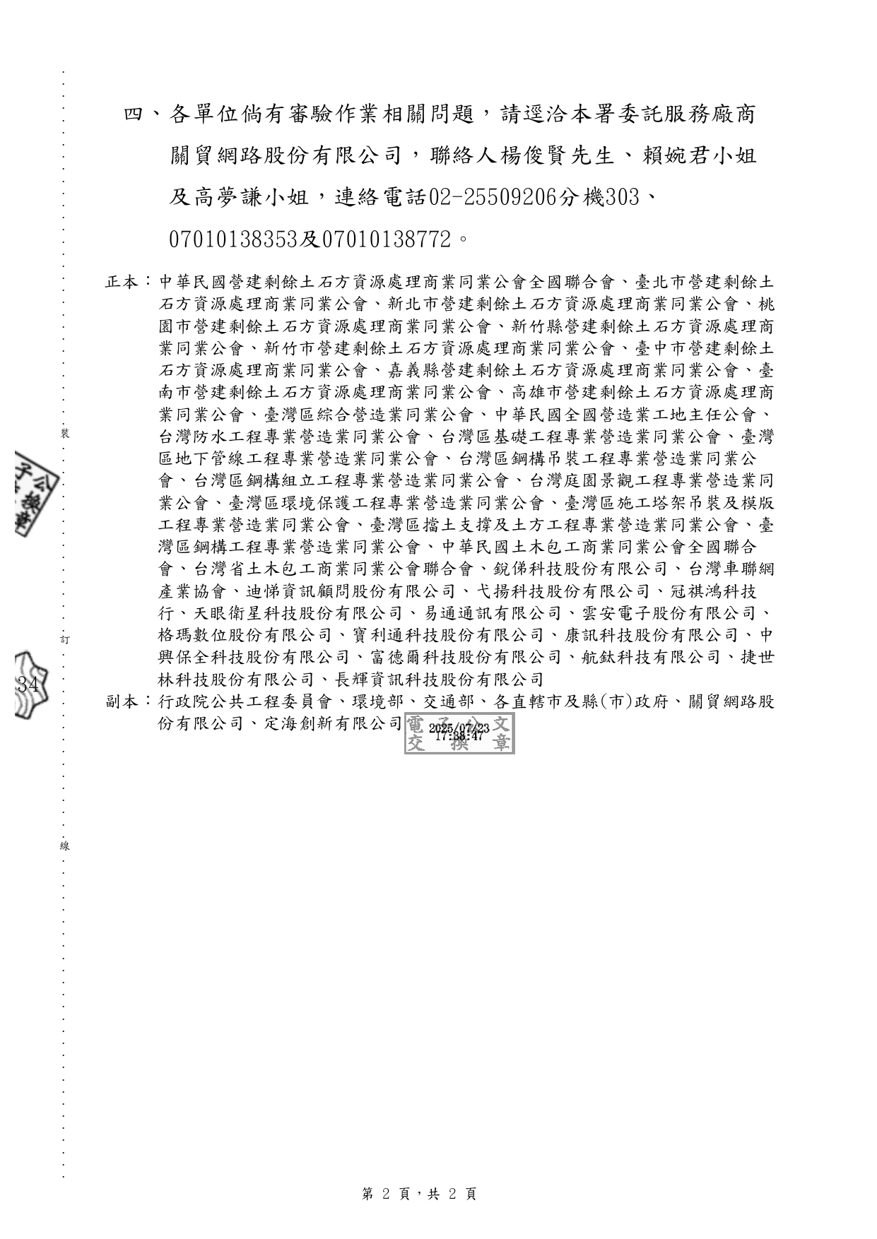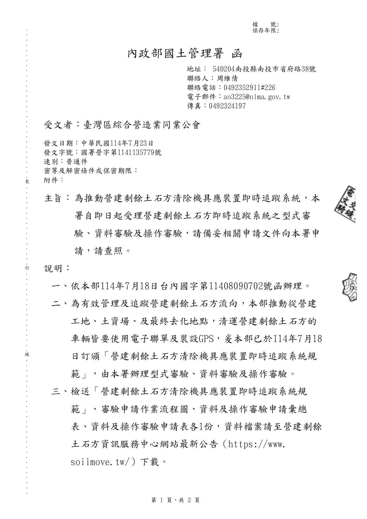 內政部國土管理署 114.7.23 國署營字第1141135779號函