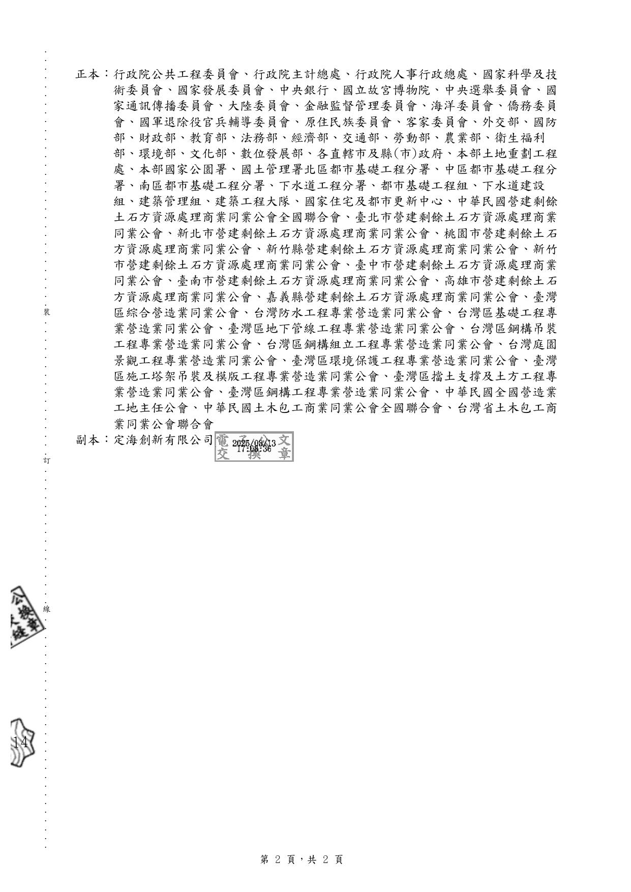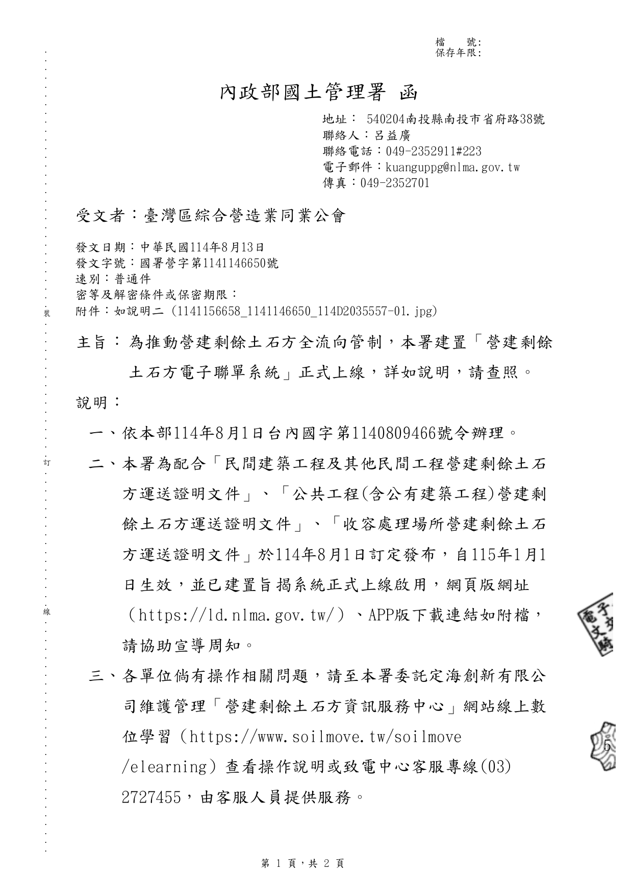內政部國土管理署 114.8.13 國署營字第1141146650號函
