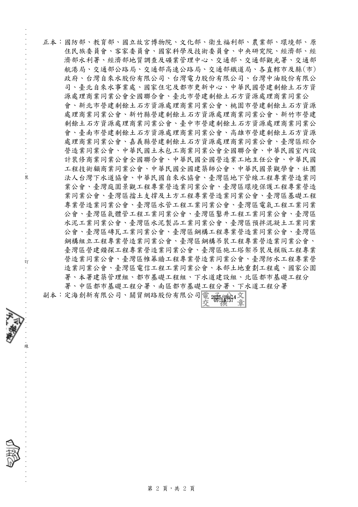 有關內政部國土管理署委託定海創新有限公司辦理「營建剩餘土石方電子聯單全國教育訓練—工程主辦(管)機關及營造業教育訓練」1案,詳如說明。