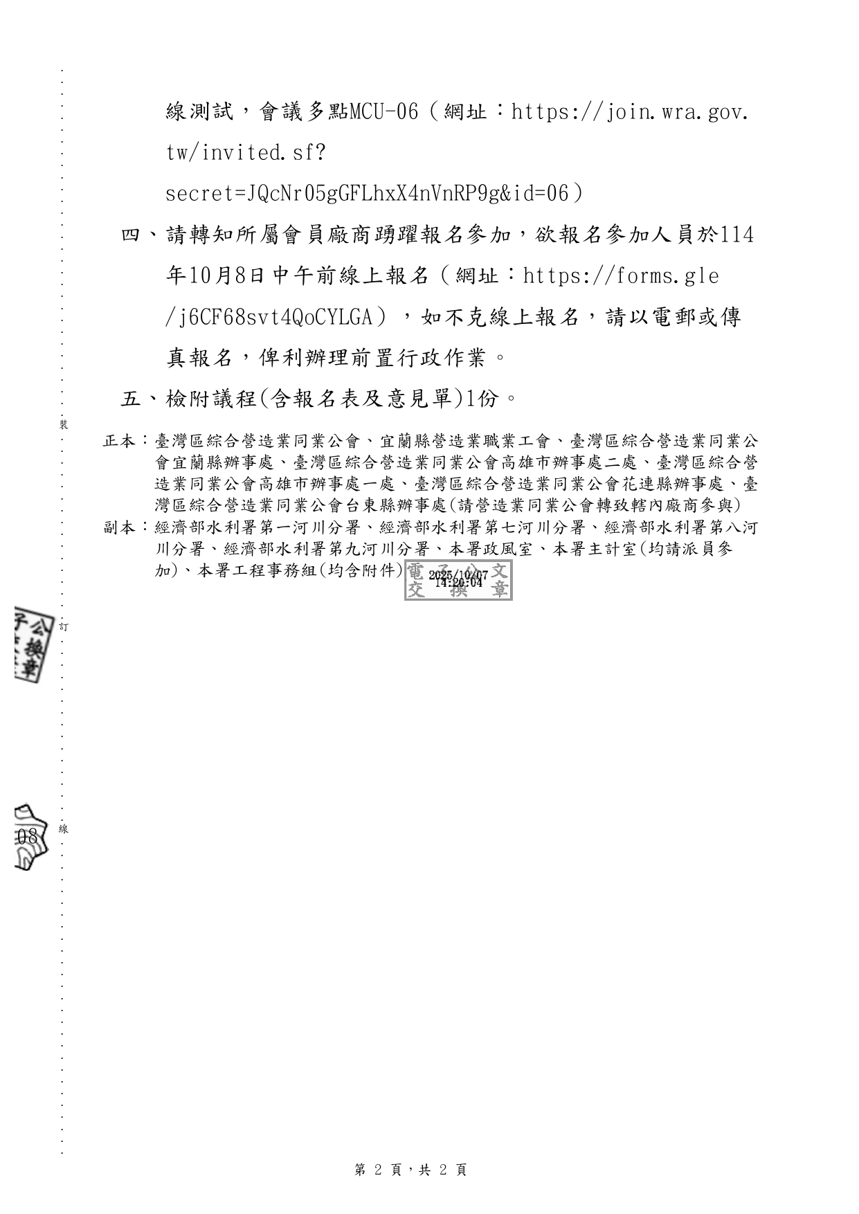 經濟部水利署 114.10.17 經水工字第11405188560號