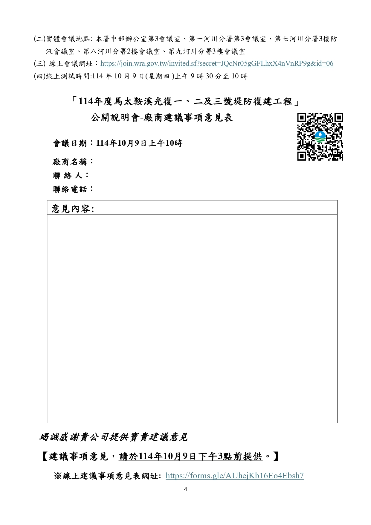 (四) 線上會議網址:https://join.wra.gov.tw/invited.sf?secret=JQcNr05gGFLhxX4nVnRP9g&id=06